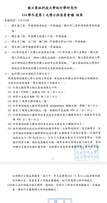 114學年度第2次 博士班委員會議結果