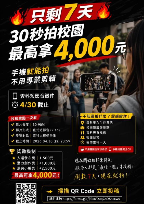 雲科短影音創作者募集進入最後倒數!