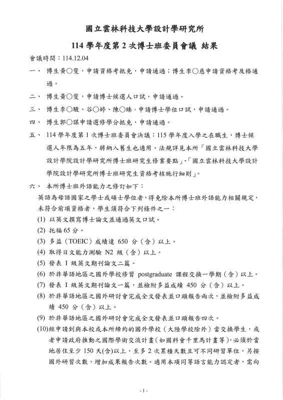 114學年度第2次 博士班委員會議結果