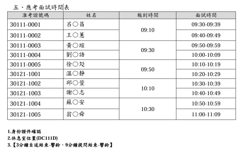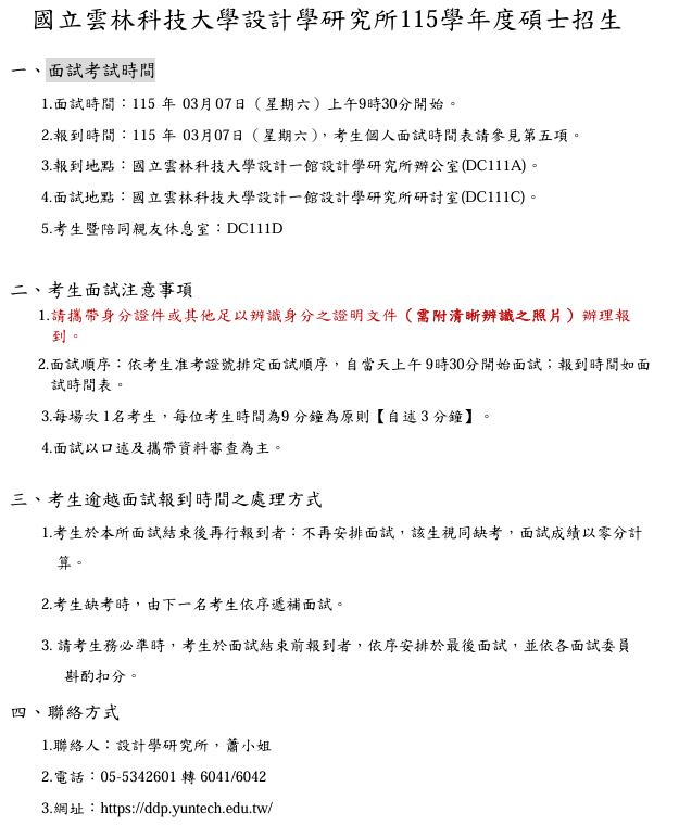 115學年度碩士招生面試須知